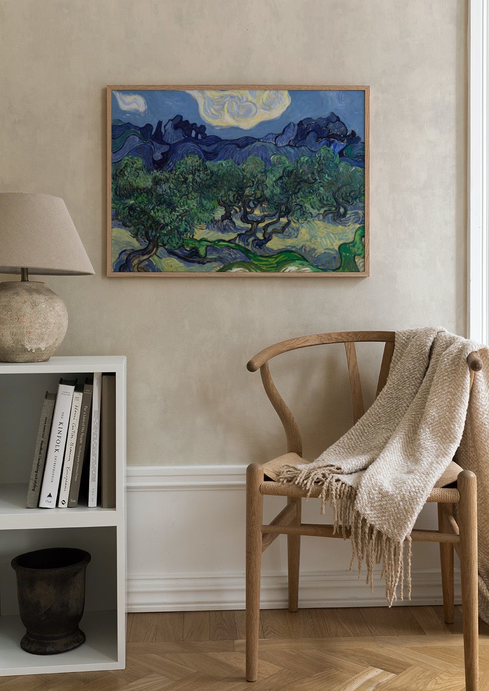 Ab 7,77 €Ein wunderschönes Landschaftsposter von Vincent van Gogh. Das Kunstwerk zeigt wirbelnde Hügel in Blau und Grün unter einem leuchtenden gelben Himmel. Die verdrehten Bäume im Vordergrund schaffen eine lebendige Atmosphäre.
